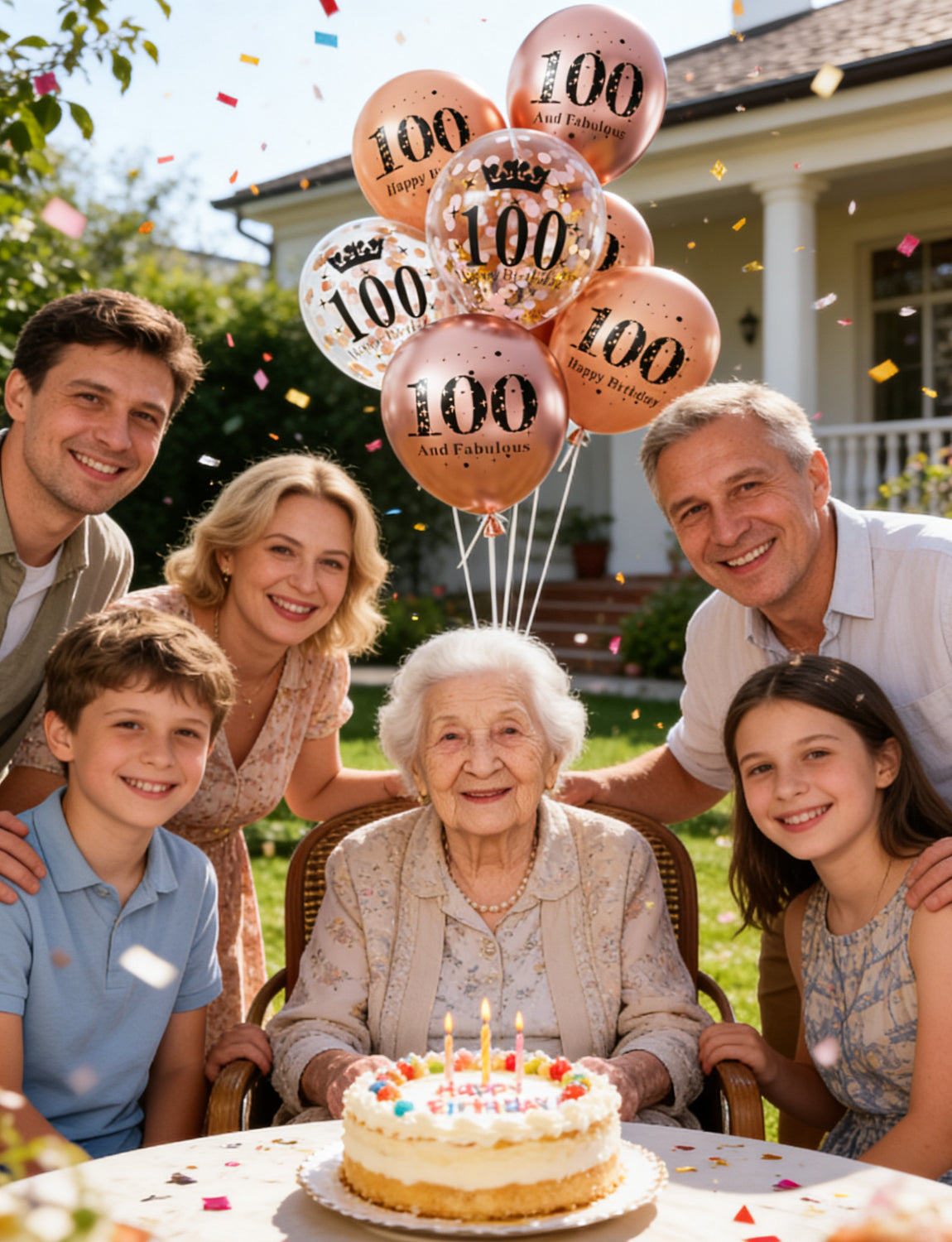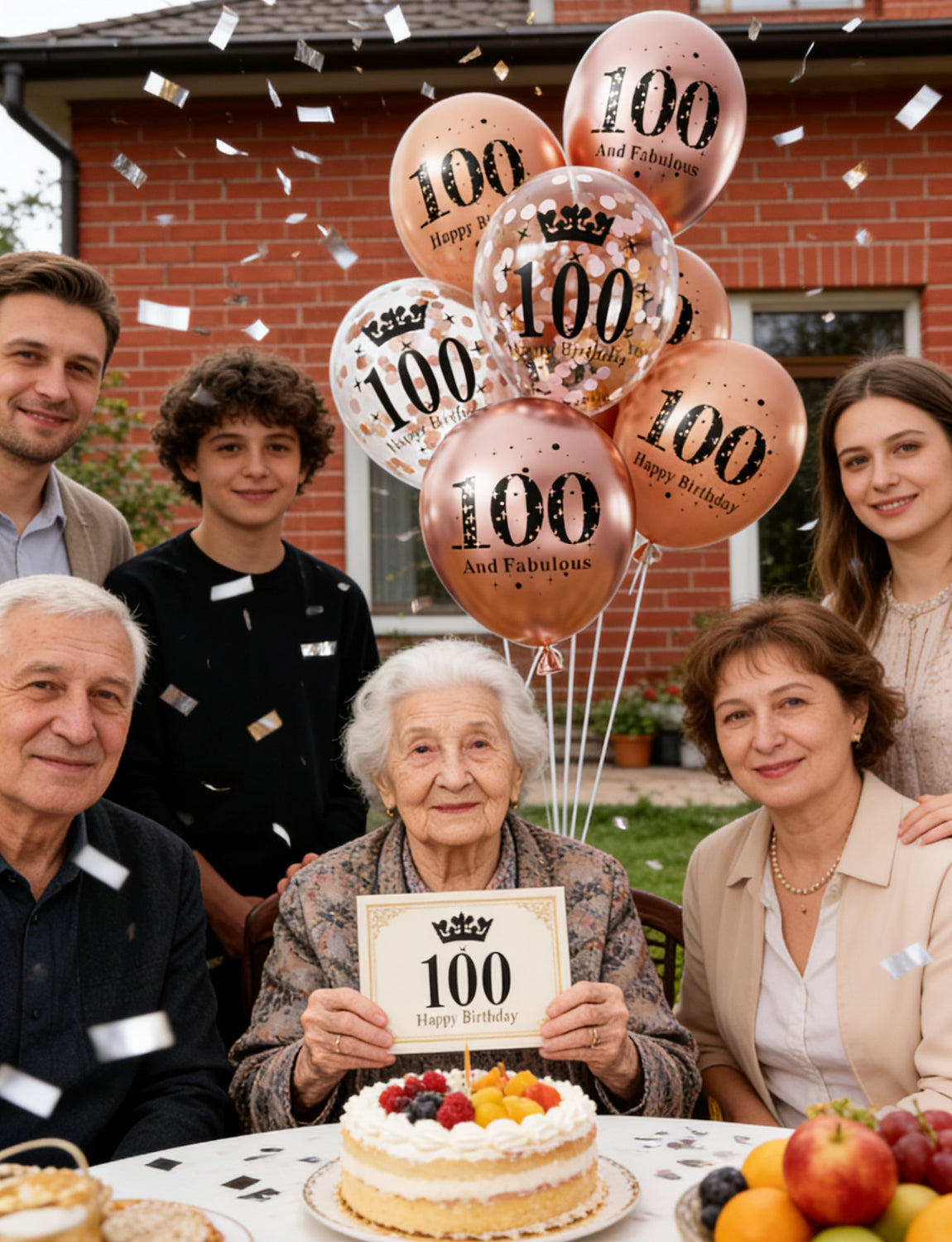 - 100th Birthday Decorations for Women: This 24-piece 12-inch 100th birthday balloon set includes 8 metallic rose gold balloons, 8 pearl rose gold balloons, and 8 confetti balloons, plus 3 sheets of glue dots and 2 white ribbons. Ideal for small parties as the main decorative bouquet, and a beautiful accent piece for larger celebrations. It brings a soft, elegant touch that enhances any setting without overpowering the space.